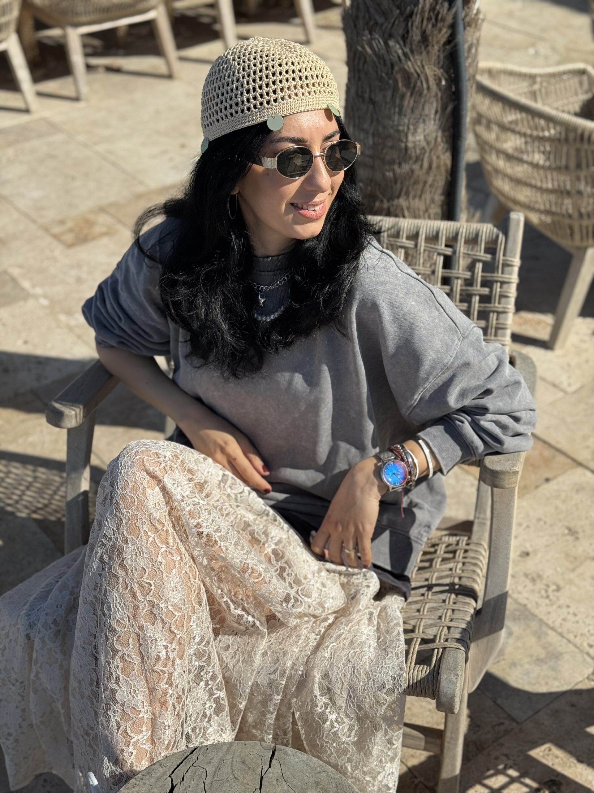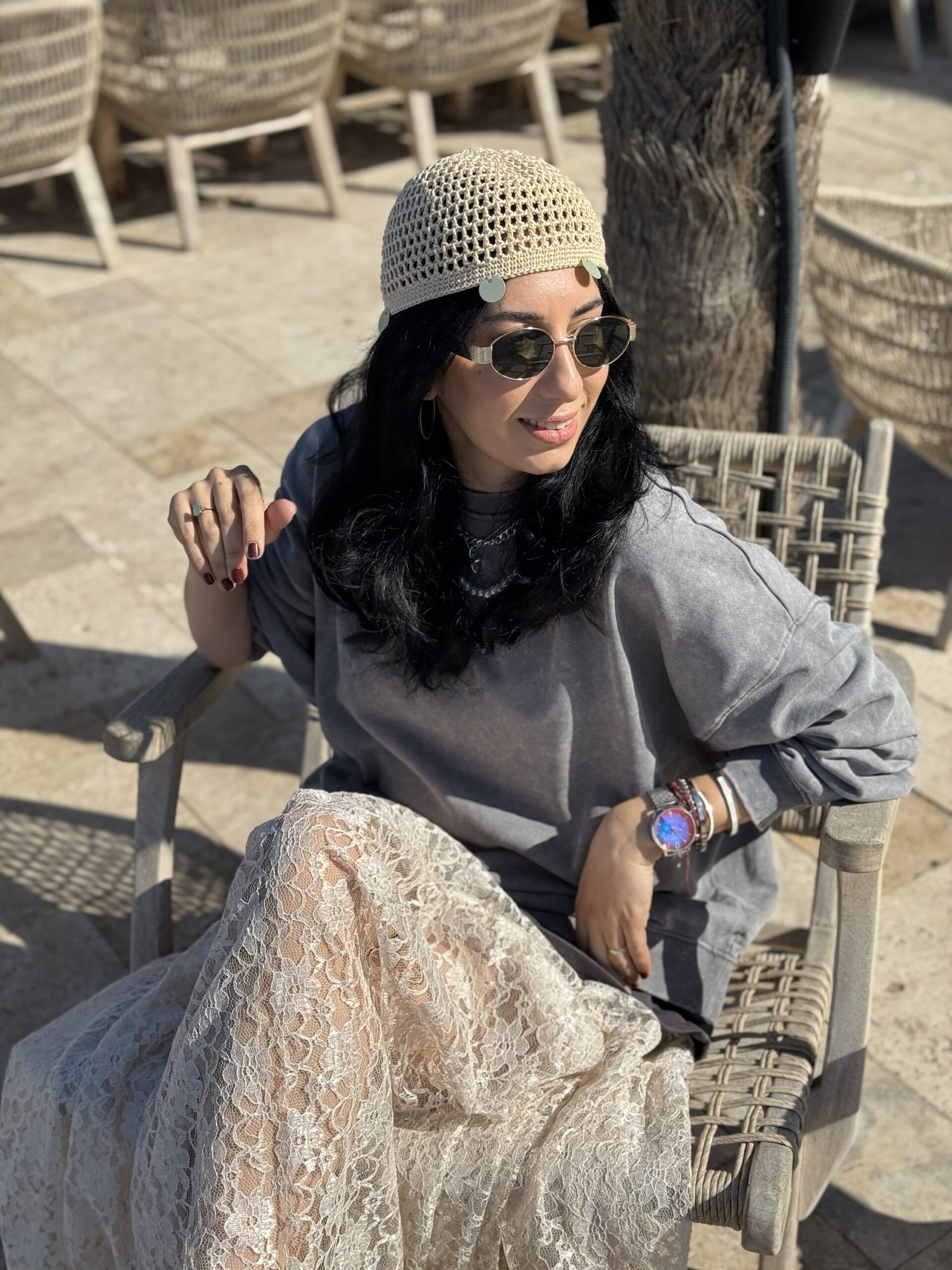 Yaz mevsiminin ruhuna uygun, hafif ve nefes alabilen yapısıyla dikkat çeken bohem file bere, tarzına özgün bir dokunuş katmak isteyenler için tasarlandı. El yapımı örgü dokusu ve salaş file formu sayesinde hem konforlu hem de stil sahibi bir görünüm sunar.